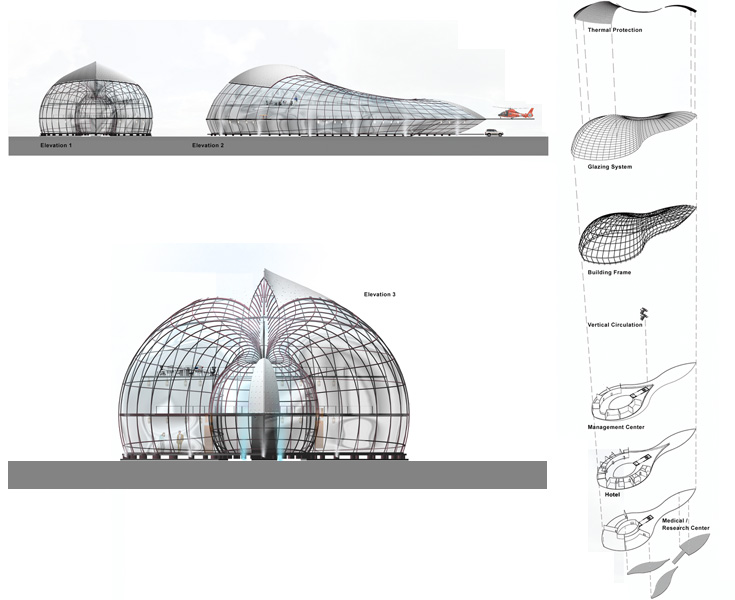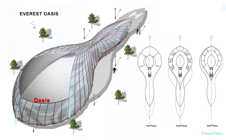 Everest Base Camp responses to its users as a hotel for climbers preparing ascent, a mountain emergency hospital, educational centre for managing, and waste management centre. It combines the technology and environmental strategies to generate a new model of emergency camp design.