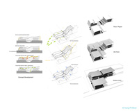 As a research project, New GSFA (Graduate School of Fine Art) was planned to create a mixed use building which combines education, office and dorms to create a design district based on environmental sustainability. Strategically New GSFA is focused on admitting a plenty of controlled natural lighting and ventilation while allowing a large foot print that enable a flow among each discipline.